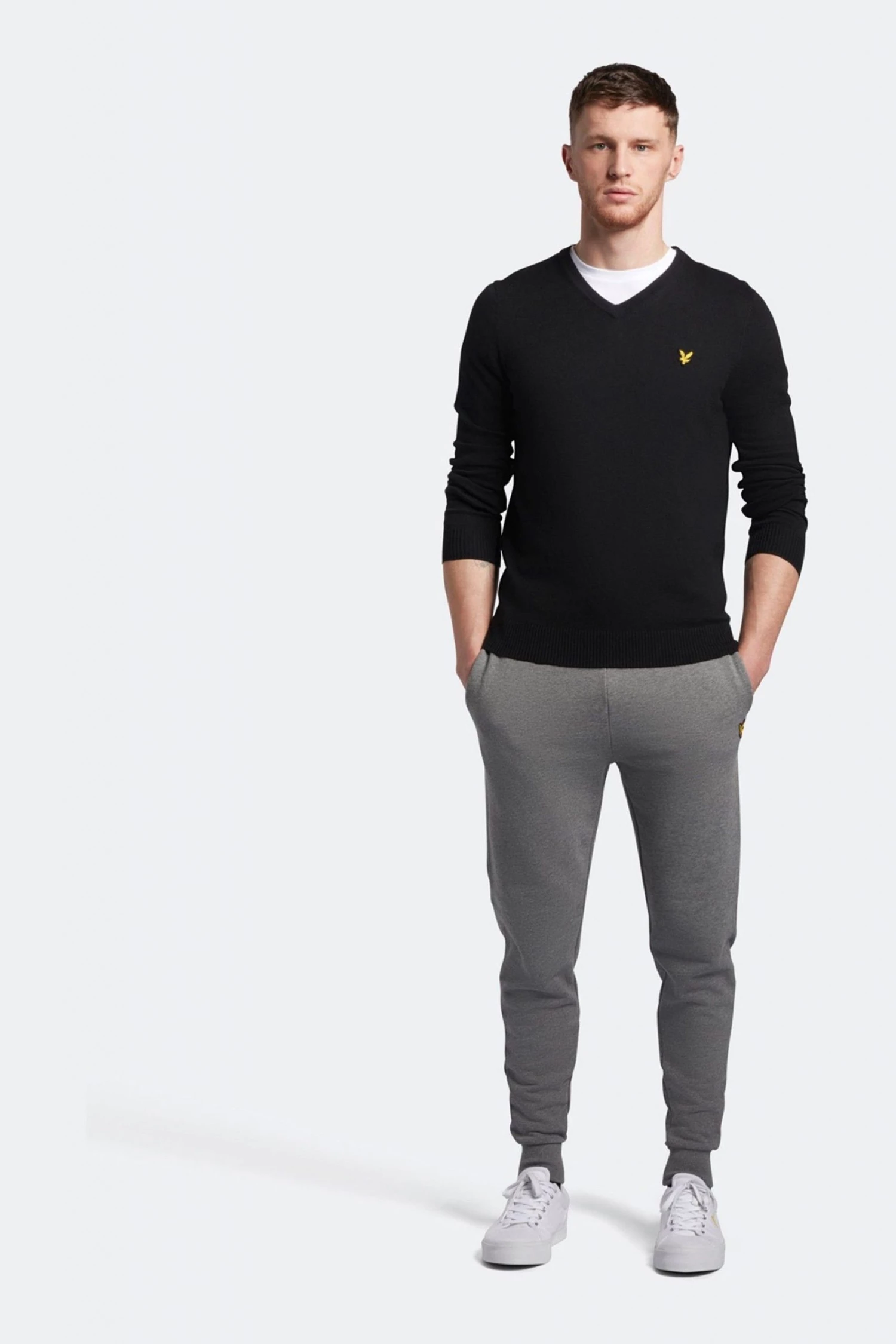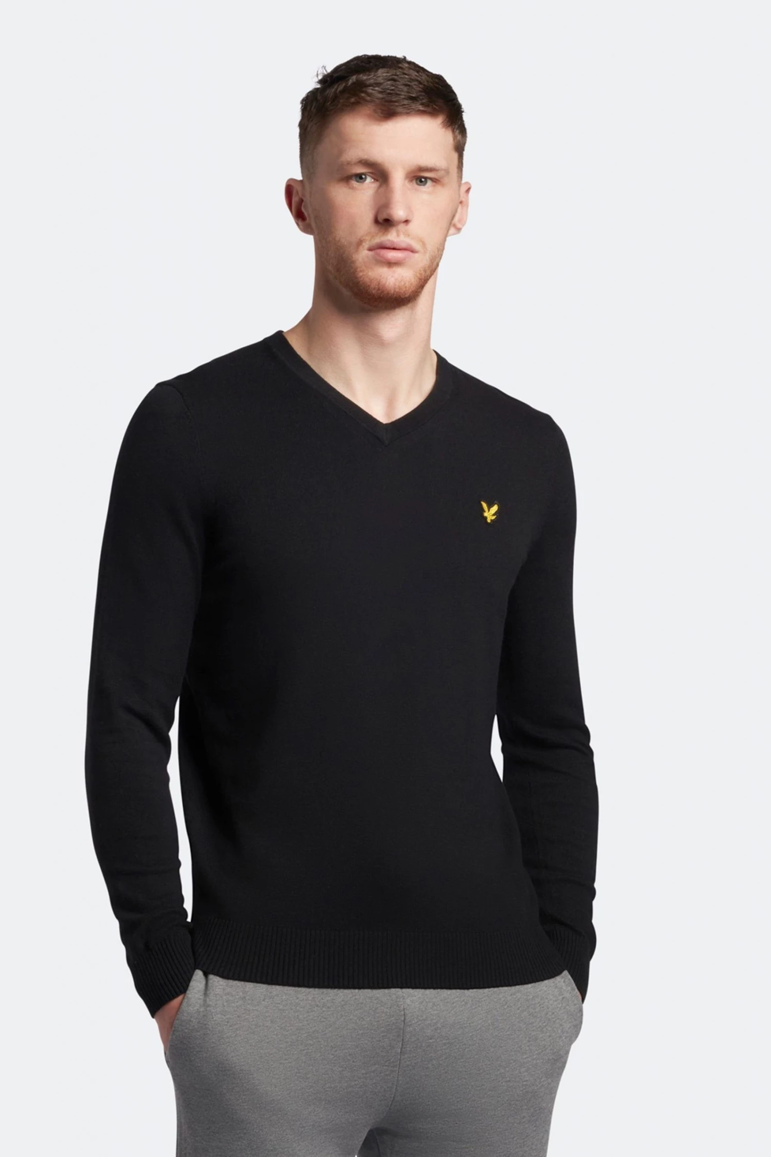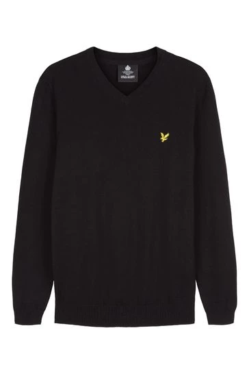 Lyle & Scott Black Cotton Merino V-Neck Jumper
