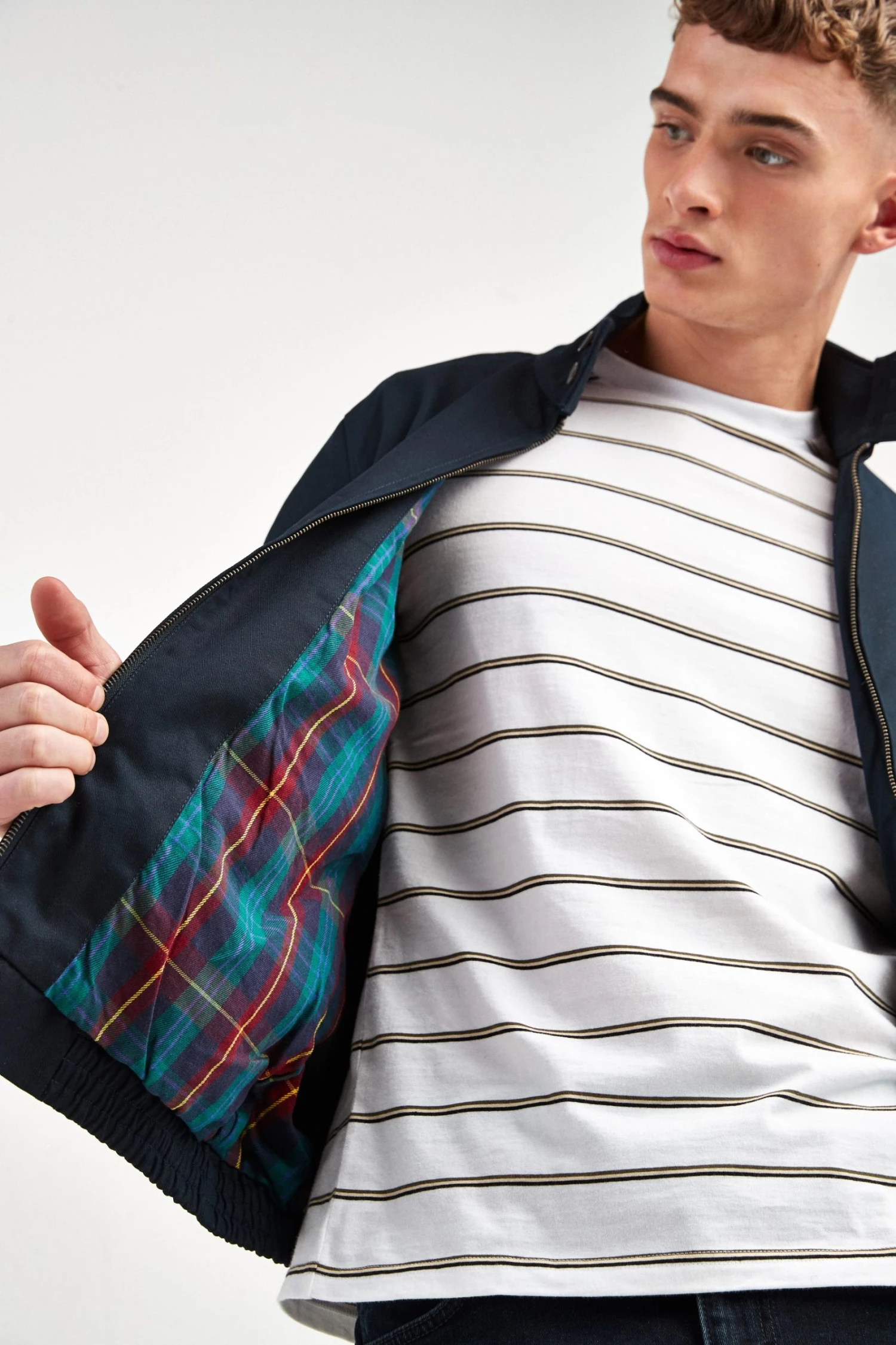 Crafted from 100% cotton, the Harrington is one of our most versatile jackets. This season we’ve updated it in a dark sage and classic navy, featuring a stylish yet subtle check lining. Style with a fine knit or classic Oxford, and complete the look with our signature denim.