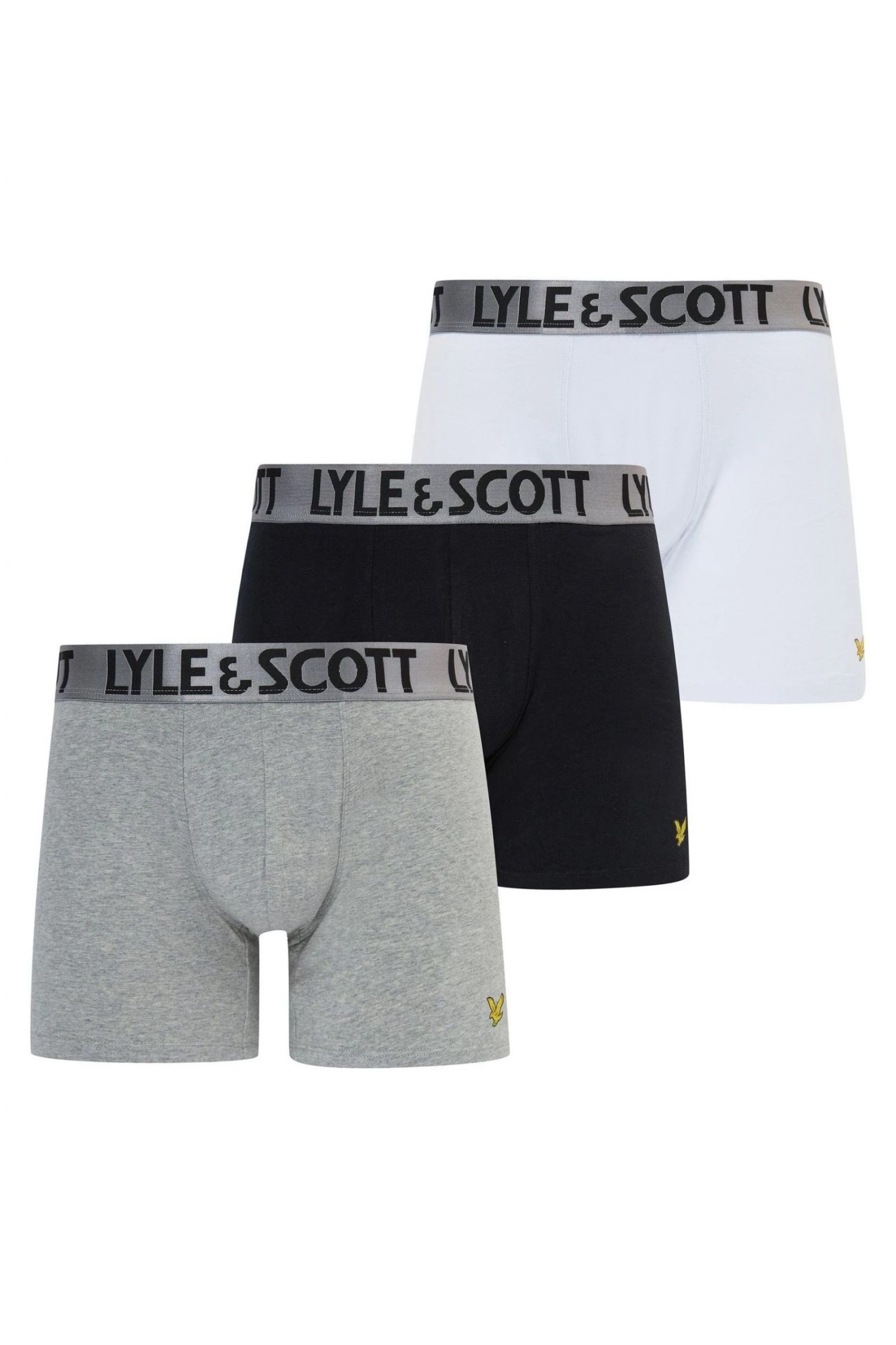 Lyle and Scott three pack men’s cotton stretch underwear trunks. Complete with premium branded elastic waistband. Finished with classic eagle branding. Perfect for any occasion or gifting.
