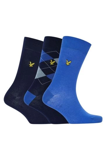 Lyle and Scott three pack men’s soft touch cotton argyle dress socks. Finished with classic embroidered eagle branding. Perfect for any occasion or gifting.