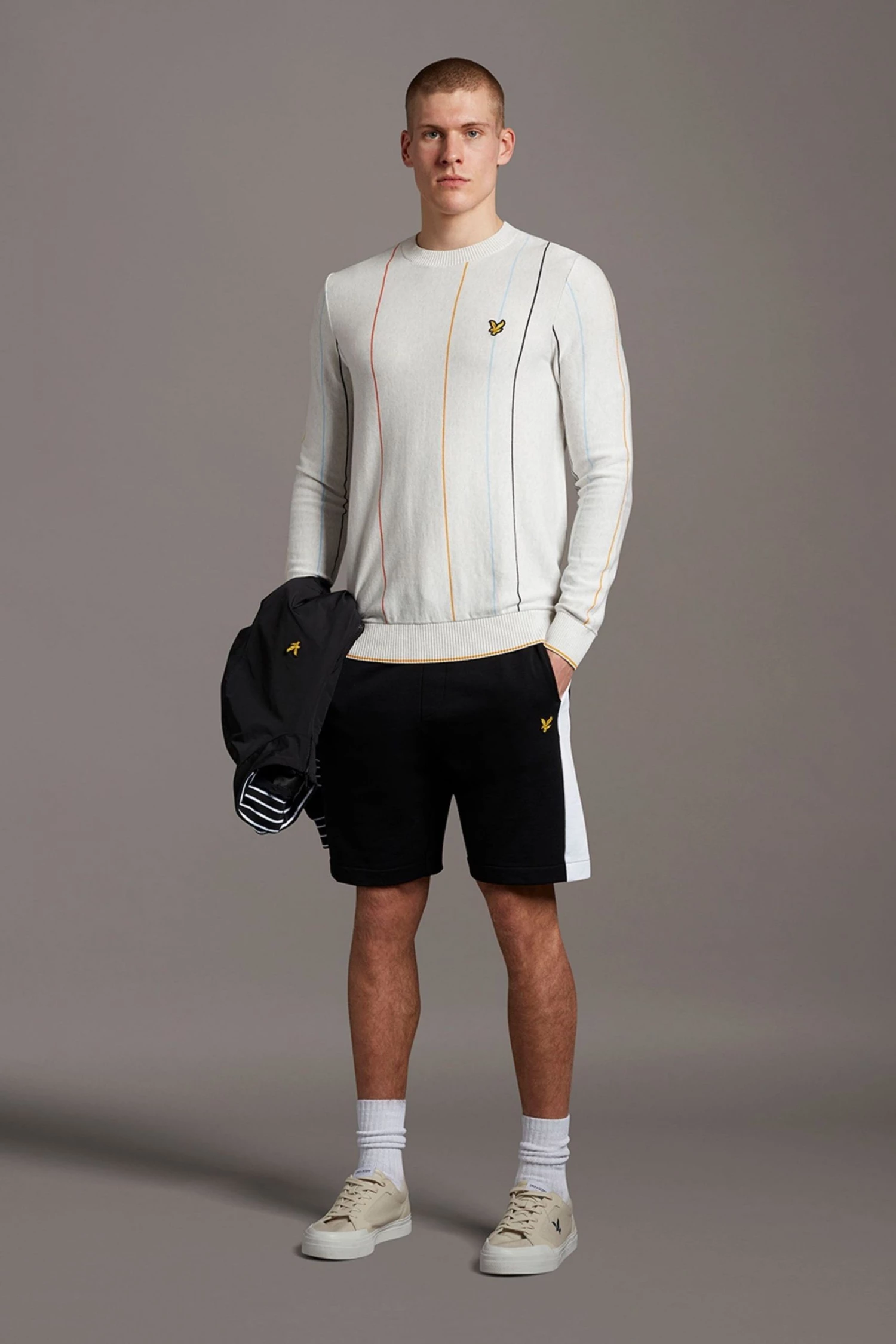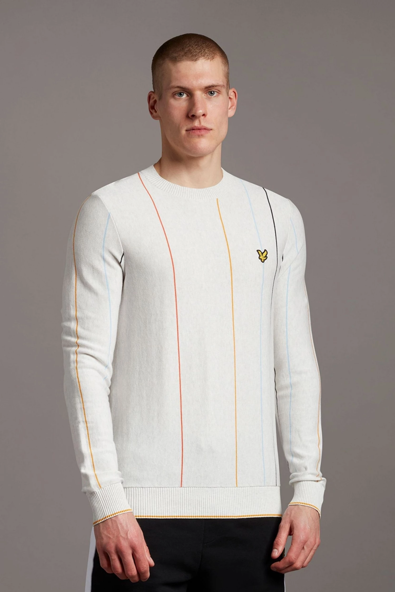 The Lyle & Scott Vertical Stripe Crew Neck Jumper is a men’s autumn/winter must-have. Made from 100% cotton, this striped men’s jumper is finished with our signature Lyle & Scott Golden Eagle branding – it’s the perfect smart-casual wardrobe staple.